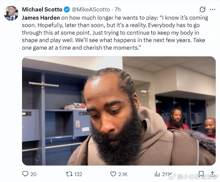 赛后阿特金森盛赞哈登带伤鏖战也非常出色,而且他在场骑士队的进攻流畅性明显更佳。